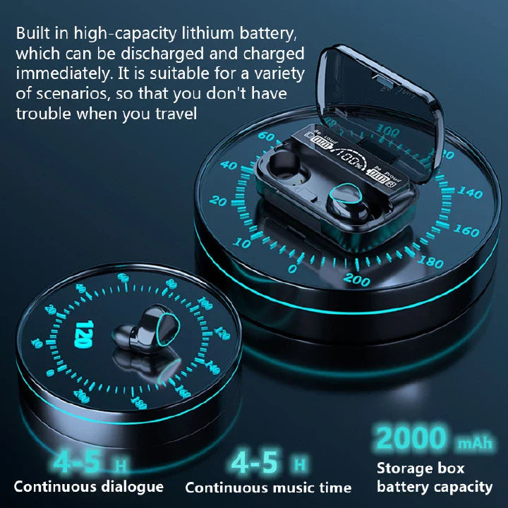 Experience superior sound with RichRipple M10 TWS Bluetooth 5.0 Earbuds, offering crystal-clear 9D stereo audio for an immersive listening experience. Stay connected effortlessly with the integrated microphone for clear calls and enjoy real-time battery monitoring via the smart LED display. Engineered for active lifestyles, these waterproof earbuds provide a secure, comfortable fit, making them perfect for sports and everyday wear. Benefit from stable, high-fidelity wireless connectivity and long-lasting performance, designed to enhance your audio journey.